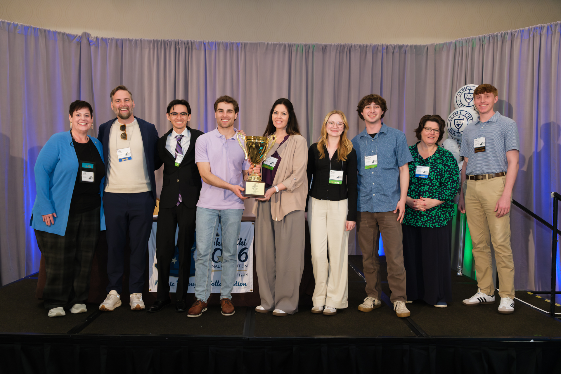 Alpha Chi’s most prestigious chapter award is the President’s Cup, given at every in-person national convention since 1987 to the chapter judged most outstanding. The beautiful President’s Cup trophy and an honorarium of $200 are presented to the recipient at the national convention. Chapters cannot win the award in successive competitions.